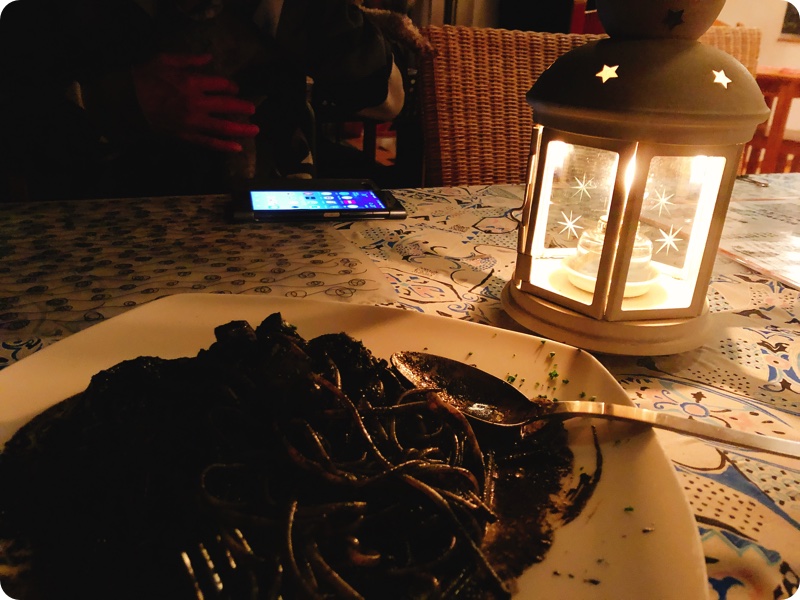 雨が降ってきてしまったが、なぎさのテラスでの夕食はテラスでみるくとララも一緒に。