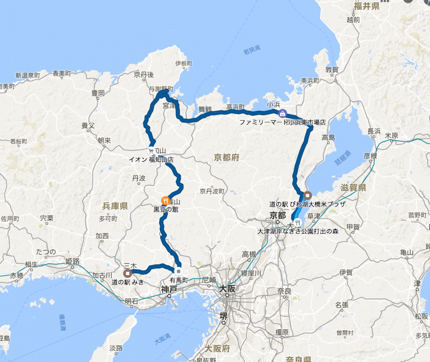 それにしても天橋立から琵琶湖までの道のりはきつかった。山道で山口県のように道が整備されていない。