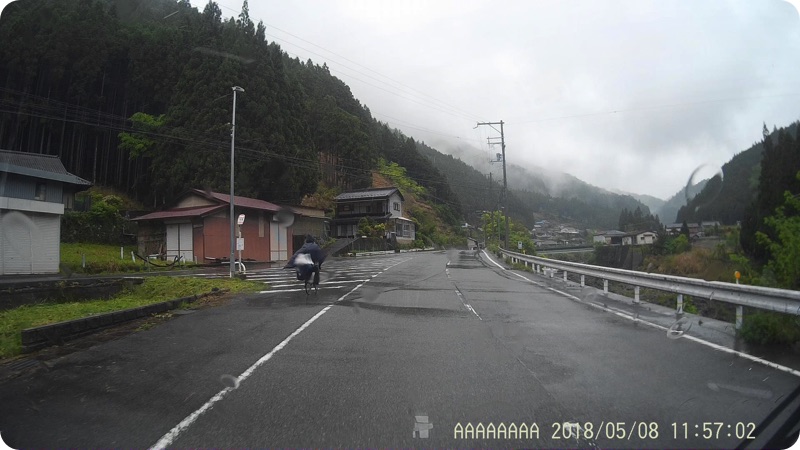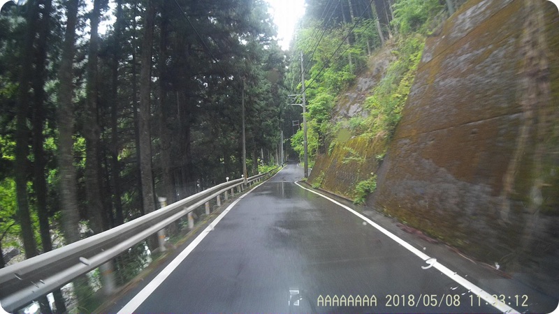 この山道は晴れていれば気持ちいいだろうが、雨だとほんとテンション下がります。