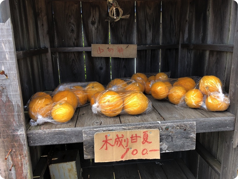 それから伊勢神宮に向かいました。途中無人販売があり、甘夏4個で100円だったのが買いました。形はふぞろいですが、おいしかったです。タネが多い。まぁ仕方ないか。