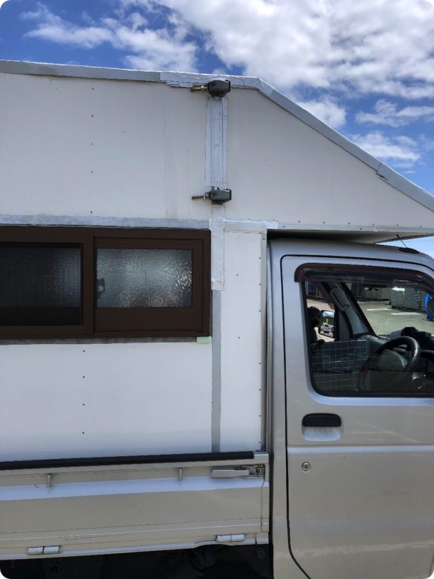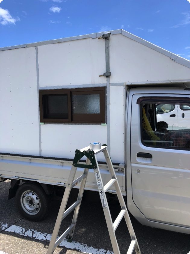 実は右側が少し雨漏りしていたので、テープで補強。脚立を借りることができ、助かりました。