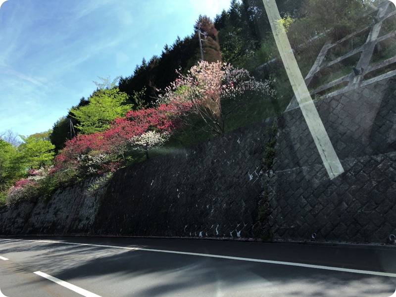 今日のメインは「君の名は。」聖地巡礼です。途中、「はなもも街道」という道があってきれいに咲いていました。