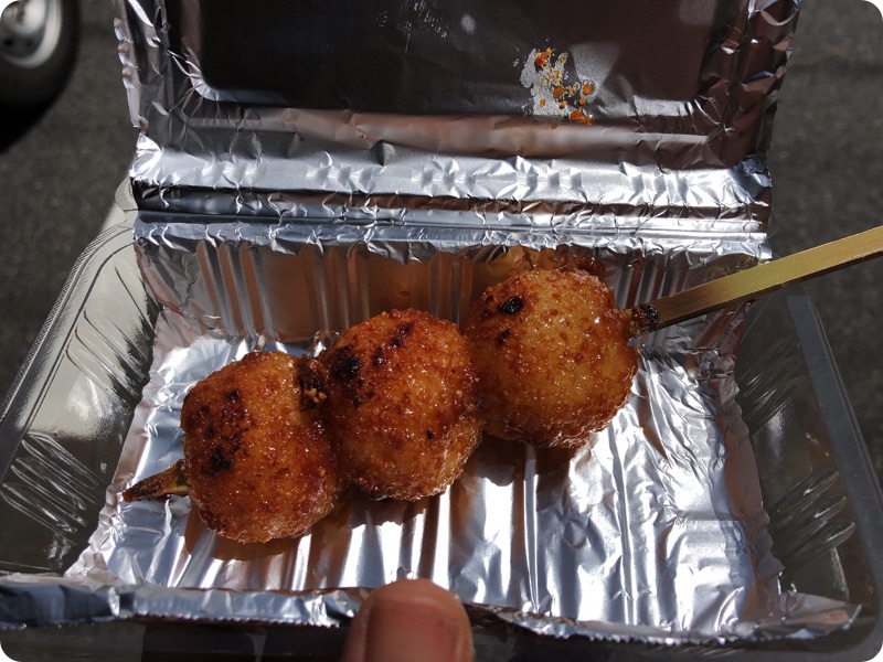 私が知っている五平餅とは形が違いますが、なんとなく味は思い出しました。甘い味噌とクルミのツブツブがおいしいのです。130円。