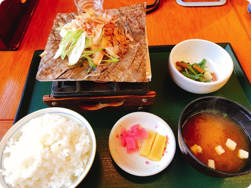 このあたりにコンビニはありません。道の駅のレストランで「ほうば味噌定食」800円を注文。