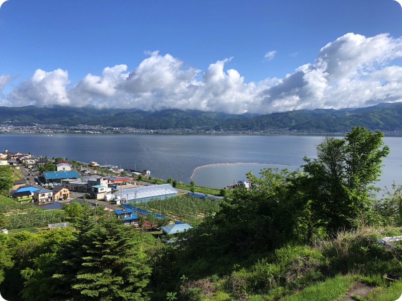 諏訪湖です。「君の名は。」を見た時に「これは諏訪湖がモデルだな」と思ったのですが、そうともいえるし、違うかもしれないようです。とりあえずこれで聖地巡り完了です。東京はしません。
