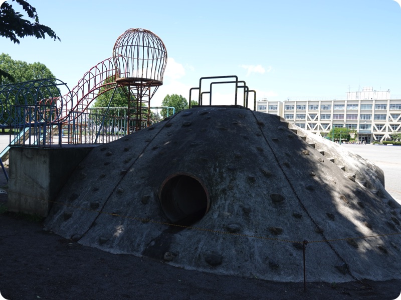 狭山市立南小学校。よく遊んだ遊具は「立ち入り禁止」となっていました。確かに50年近くたちますからね。危険かもしれません。