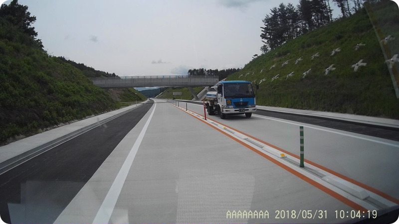 新しくできたばかりの道でGoogleMapも認識不能な自動車専用道路がありました。白い路面は珍しいかも。走りやすかったです。