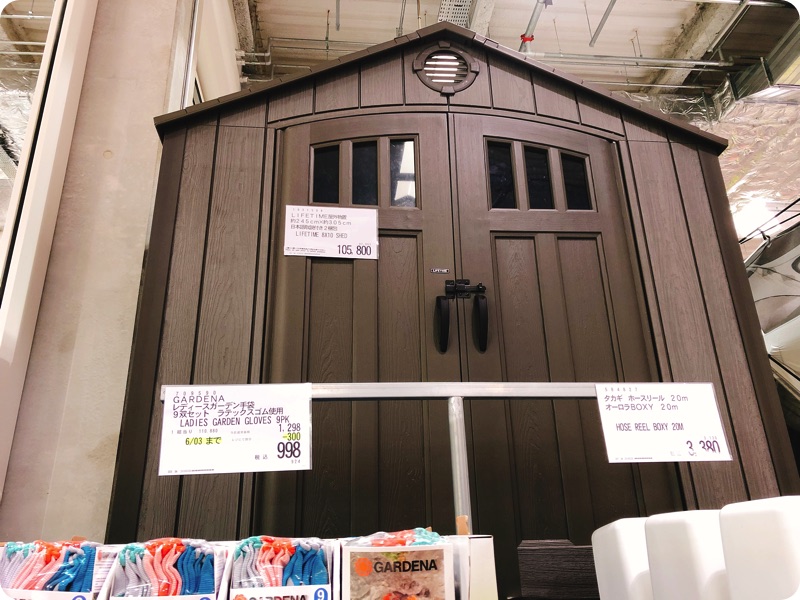 かなり大きめな物置なのに、105,800円。近かったらこれ買いたい。