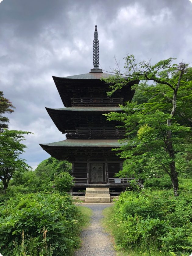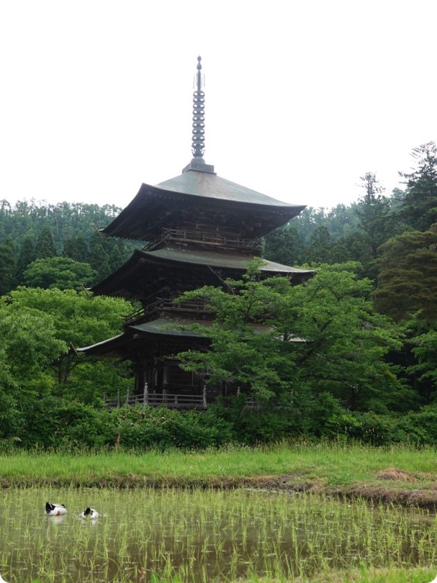 写真はすぐ近くにある「安久津八幡神社」。三重の塔。今から300年くらい前に作られたのかな。