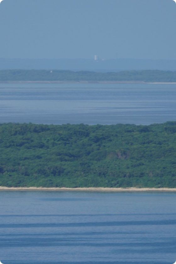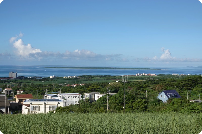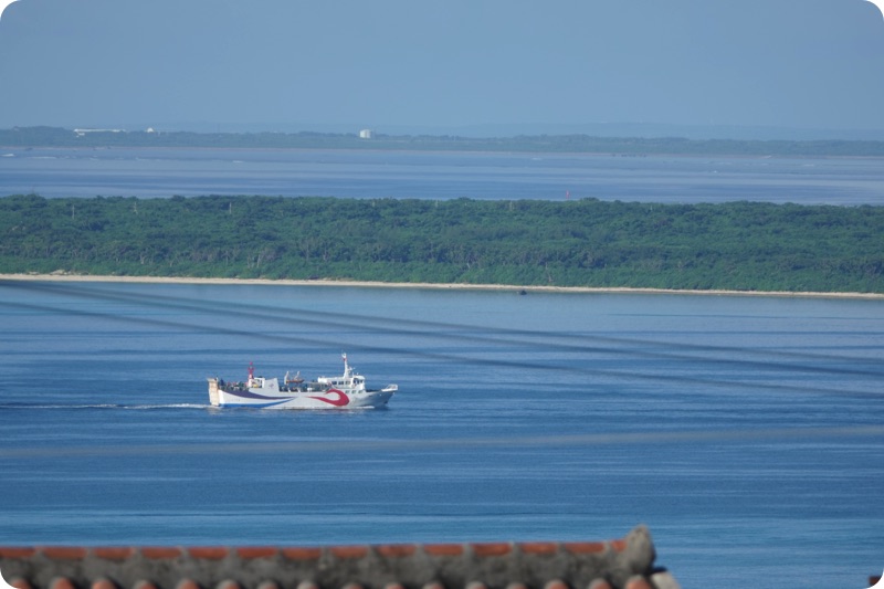 望遠すると、波照間島まで見えました。手前から竹富島、黒島、波照間島。