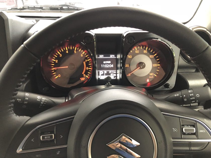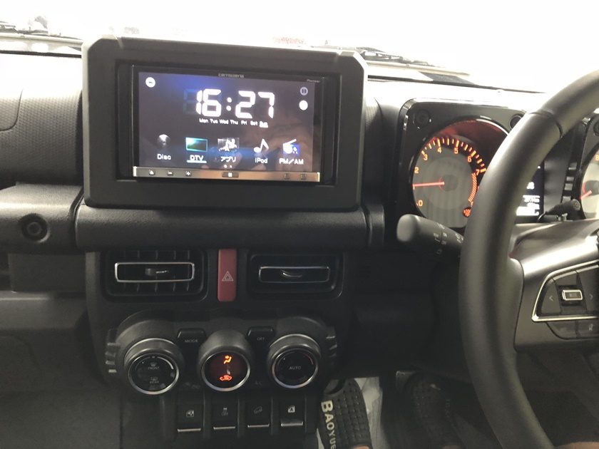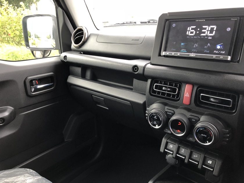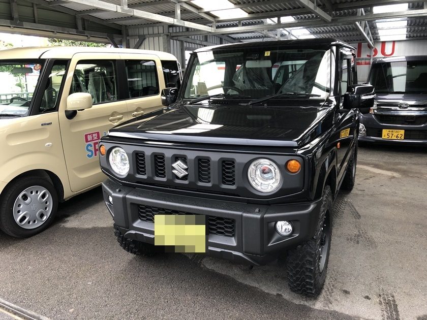 運動公園の西側、ビッグオートさんに軽トラのエンジンオイル交換に行ったら、新型ジムニーが置いてあるではないか!
