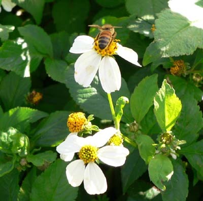 センダンソウにはミツバチが。これが種になると洋服や犬につくのでやっかいなのだな。