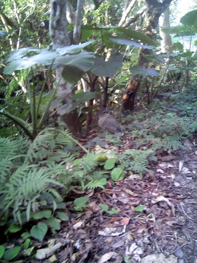 すぐにこんなにでかいクワズイモがあるのか! というくらい大きな葉を発見。原始の世界だ。