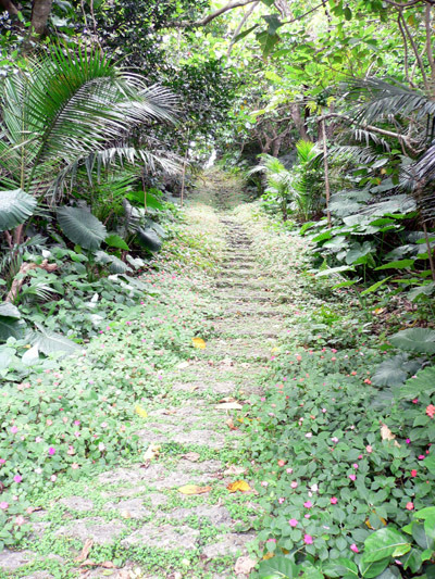 この隠れ家にむかう道は、インパチェンスが両脇に咲いており、童話にでてきそうな道でした。